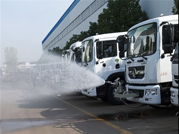 灑水車在灑水和澆灌花木時,其操作程序是;調節三通球閥位置(注意:三通球閥凹坑所對方向關閉),關閉鋁合金球閥和消防栓,打開不銹鋼球閥,打開鋁合金球閥,踏下離合,打開取力器開關,慢慢松開離合(千萬不可過快,否則將會損壞取力器或變速箱),使水泵開始工作,即可實現灑水和澆灌花木的功能,停止工作后開關回位。