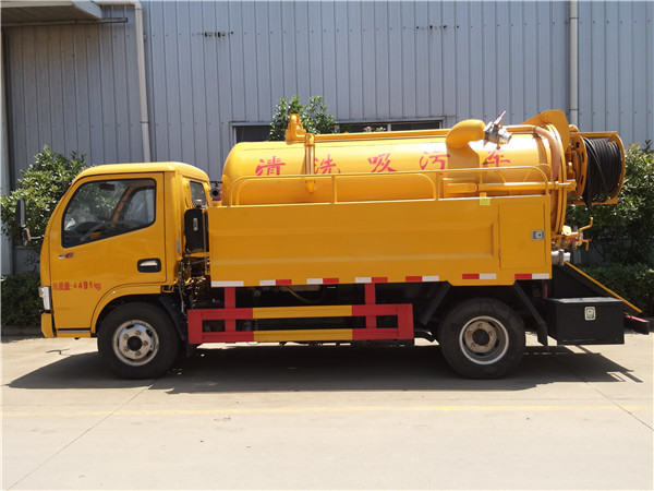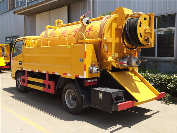 3. 高壓清洗吸污車采用液壓頂開排污結構,排污效率和排污效果要好。